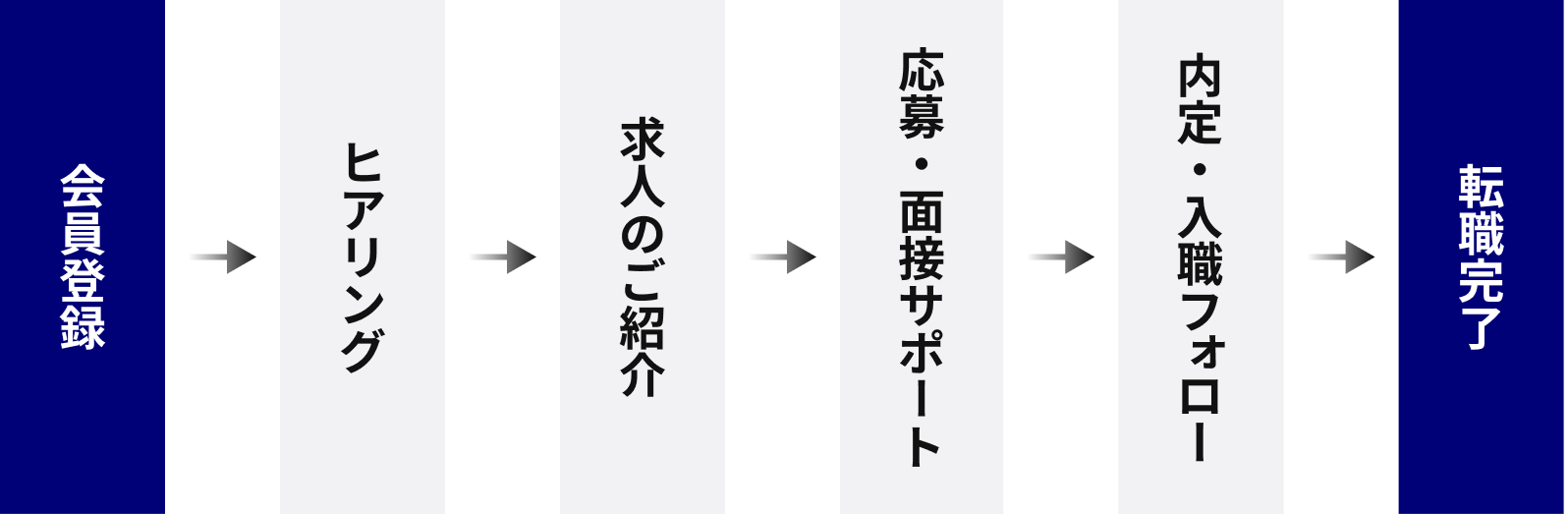 履歴書や職務経歴書の作成、面接日程の調整などをサポートいたします。
